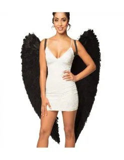 Zwart Gevederde Vleugels 120 X 120 Cm Volwassenen