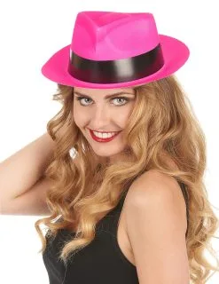 Fluo Roze Gangster Hoed Voor Volwassenen