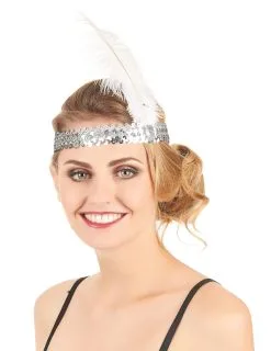Zilverkleurige Charleston Hoofdband Met Lovertjes En Veer