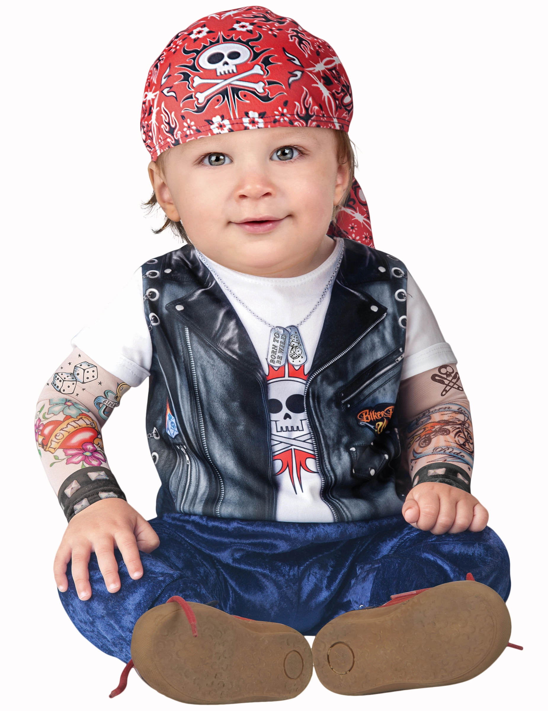 Dit stoere en grappige baby kostuum van een motorrijder is ideaal voor carnaval of een photo shoot!