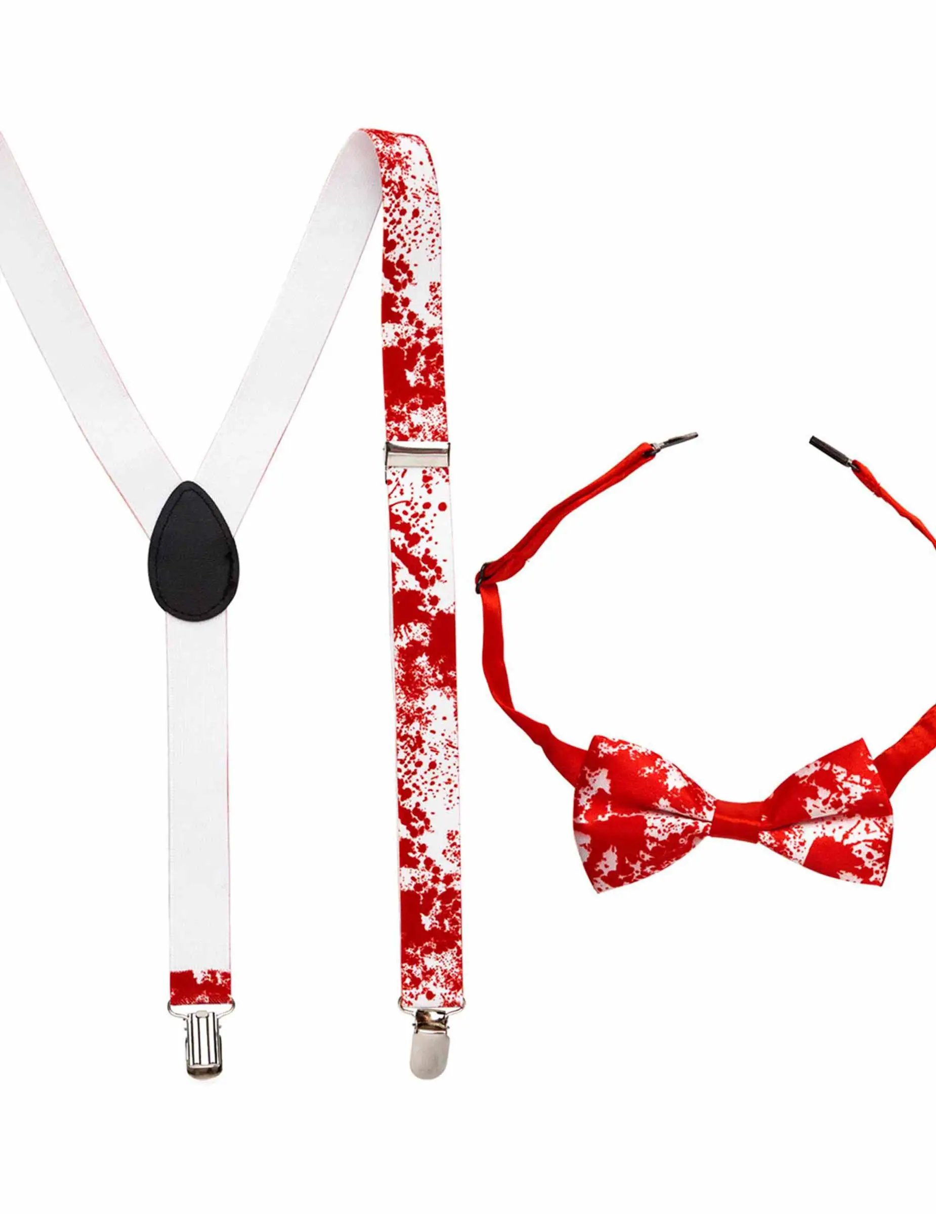 Deze Halloween accessoire set voor volwassenen bestaat uit bretels en een strikje.