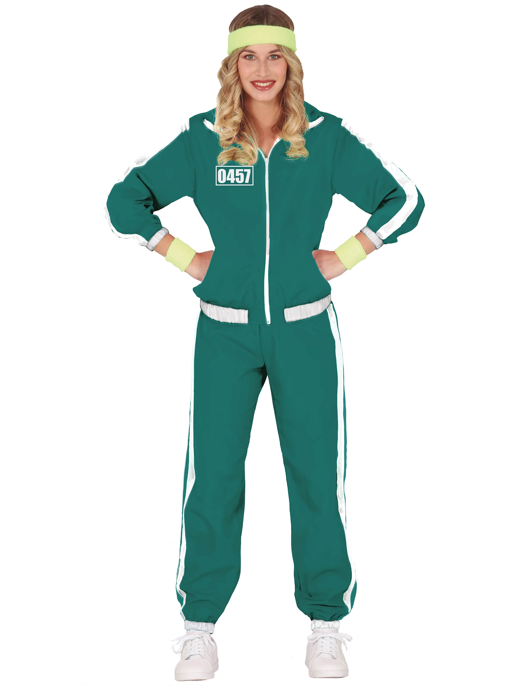Het Deelnemerspak Groen met nummer 457 is geschikt voor vrouwen.