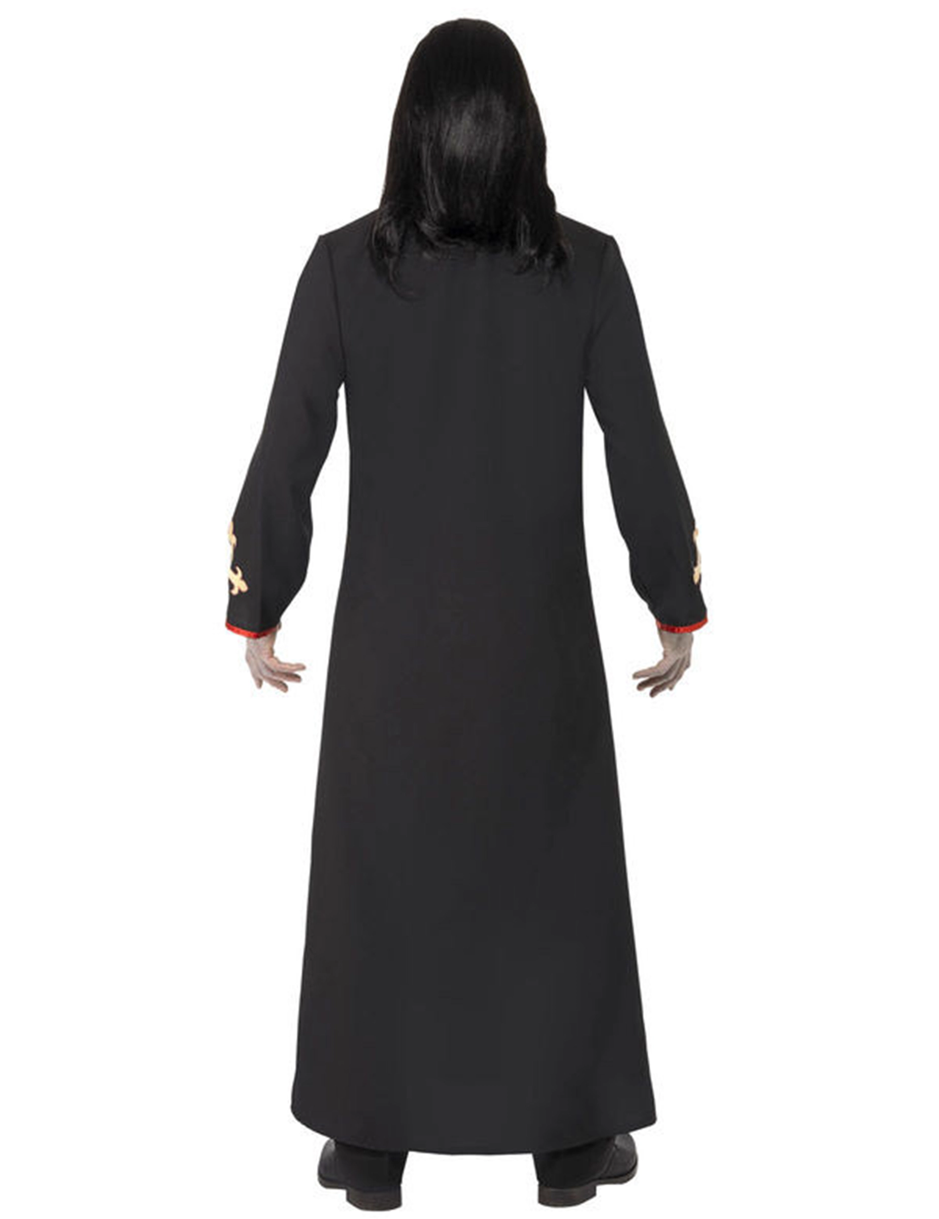Dit verkleedpak voor heren stelt een demonische monnik voor. Bestaat uit een kleed die beprint is met een kruis aan de onderkant en de polsen. Acht goudkleurige knopen zijn aan de taille en de kraag genaaid. Het pak bevat ook schouderstukken ( Pruik, en kruis hanger niet inbegrepen).