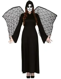 Dit dodenengel kostuum voor vrouwen bestaat uit een lange jurk en vleugels.