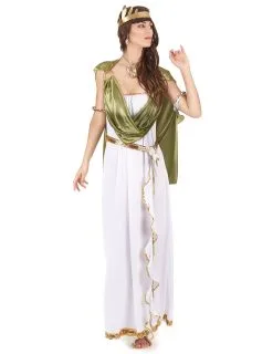 Deze Griekse godin outfit voor vrouwen bestaat uit een jurk, een toga, een riem en een kroon. (Schoenen en sieraden zijn niet inbegrepen).