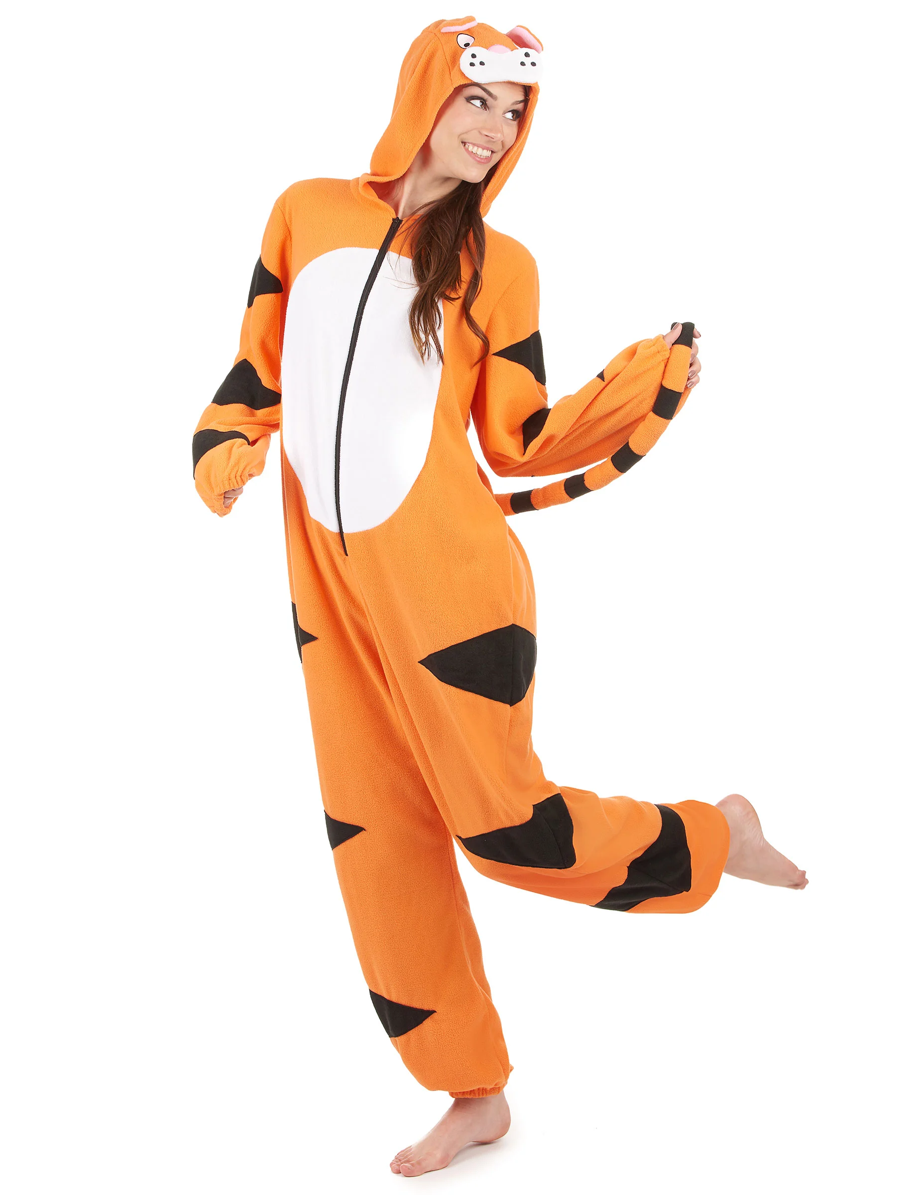 Deze tijger outfit voor vrouwen bestaat uit een eendelig pak.