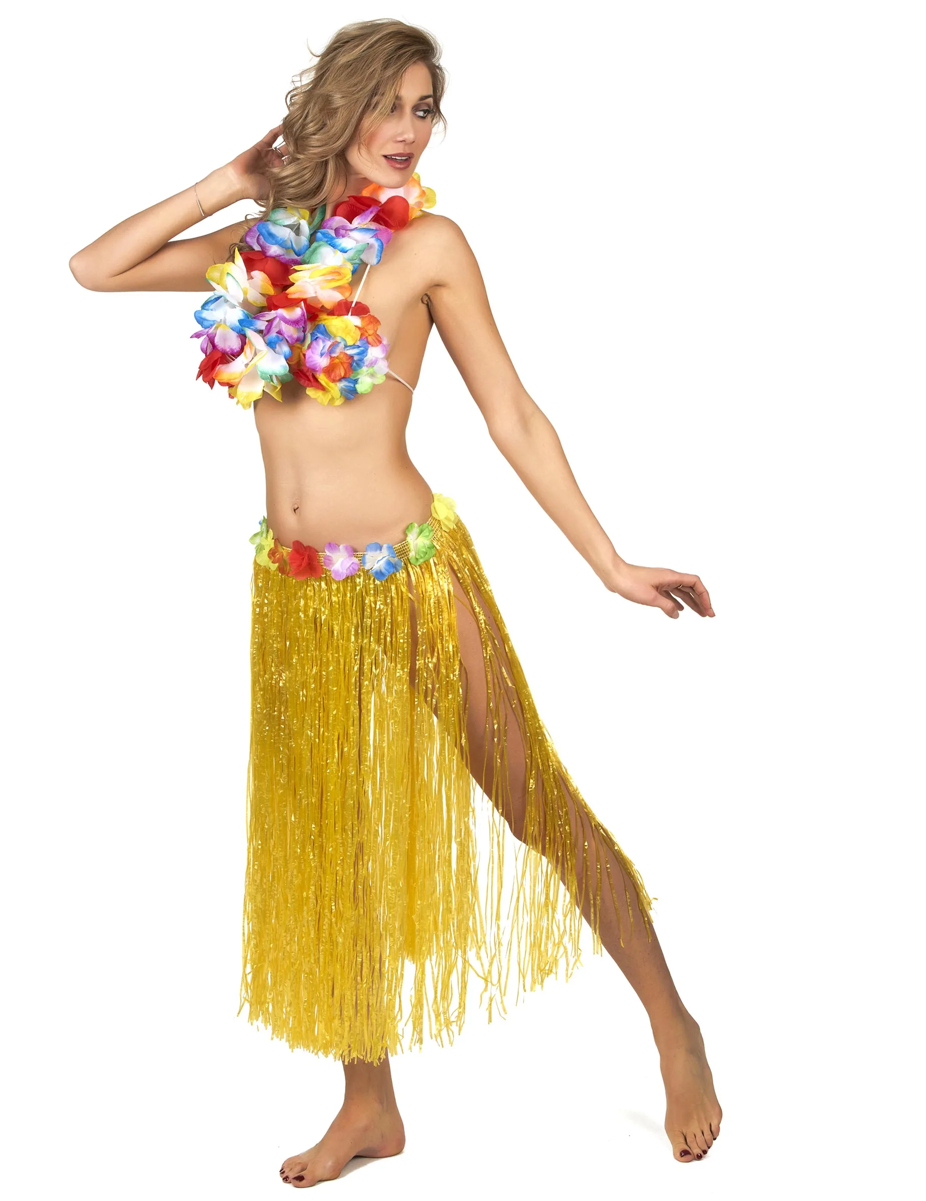 Deze hawaiiaanse rok voor vrouwen is geel.