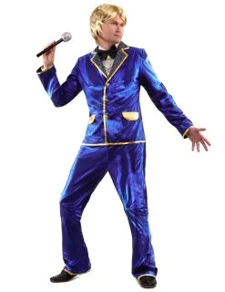 Dit disco kostuum voor mannen bestaat uit een jasje en een broek. (Blouse, strikje, pruik, schoenen en microfoon niet inbegrepen.)