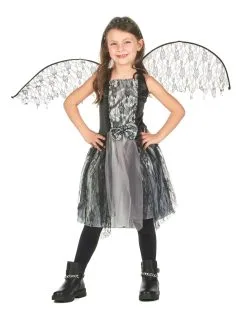 Deze gothic vermomming is voor meisjes, hij is samengesteld uit een jurk en vleugels.