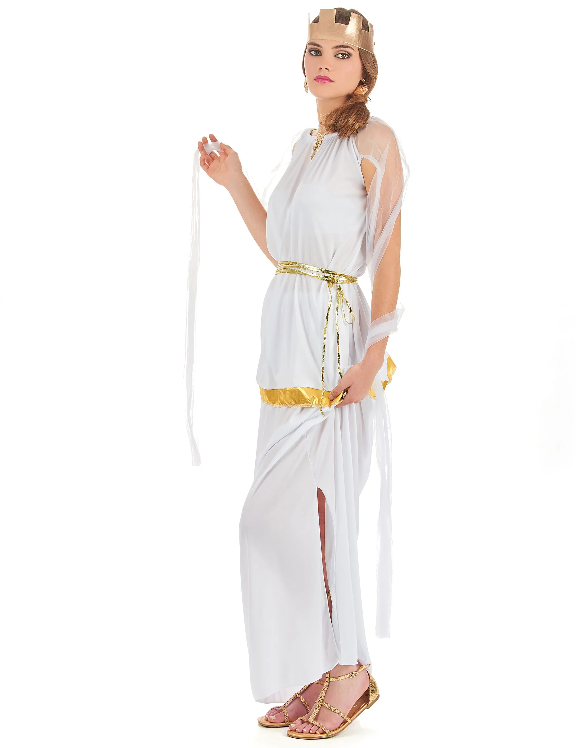 Dit kostuum van de Griekse koningin Athena voor vrouwen bestaat uit 4 delen.