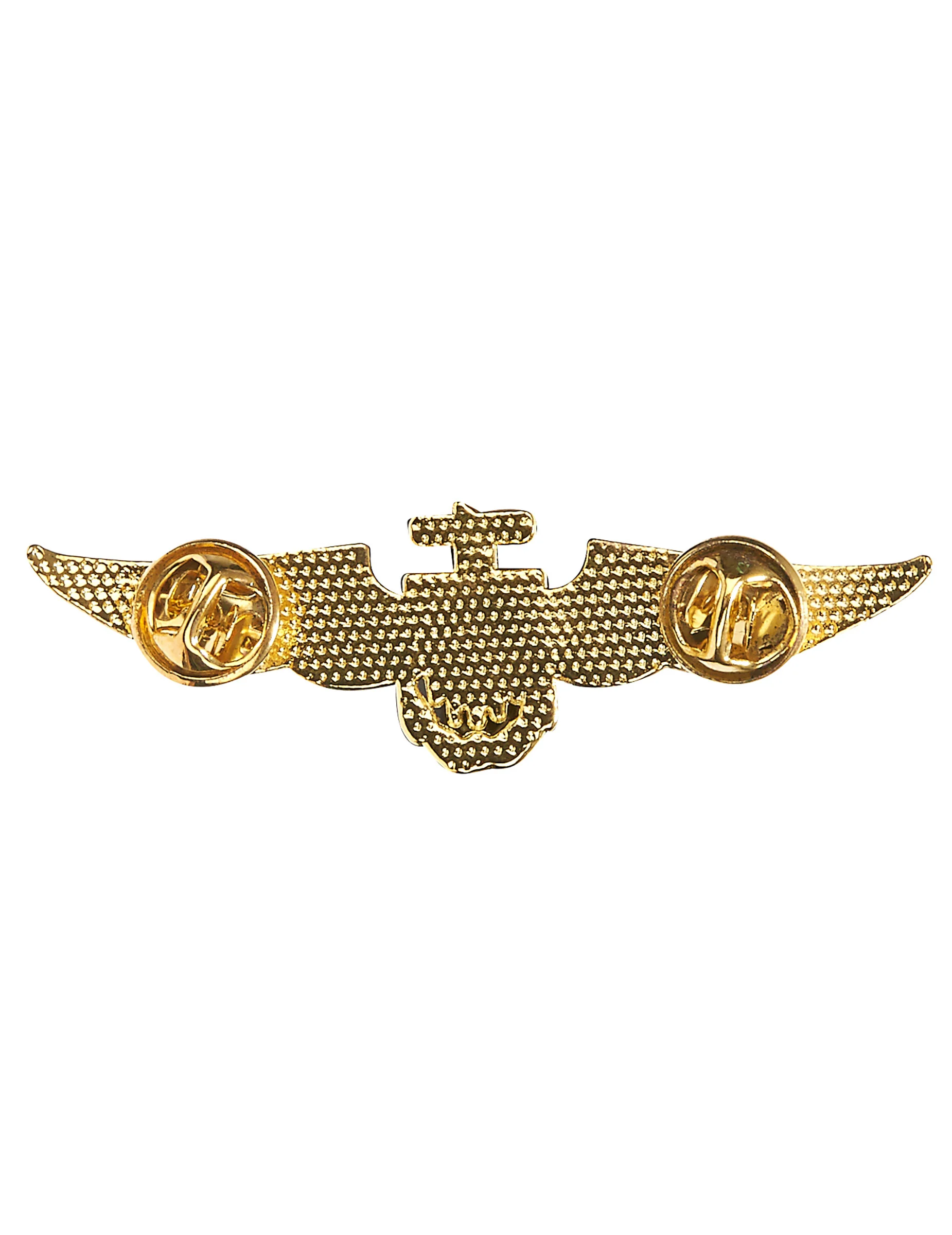 Deze piloten broche is goudkleurig en is ongeveer 8 cm lang.