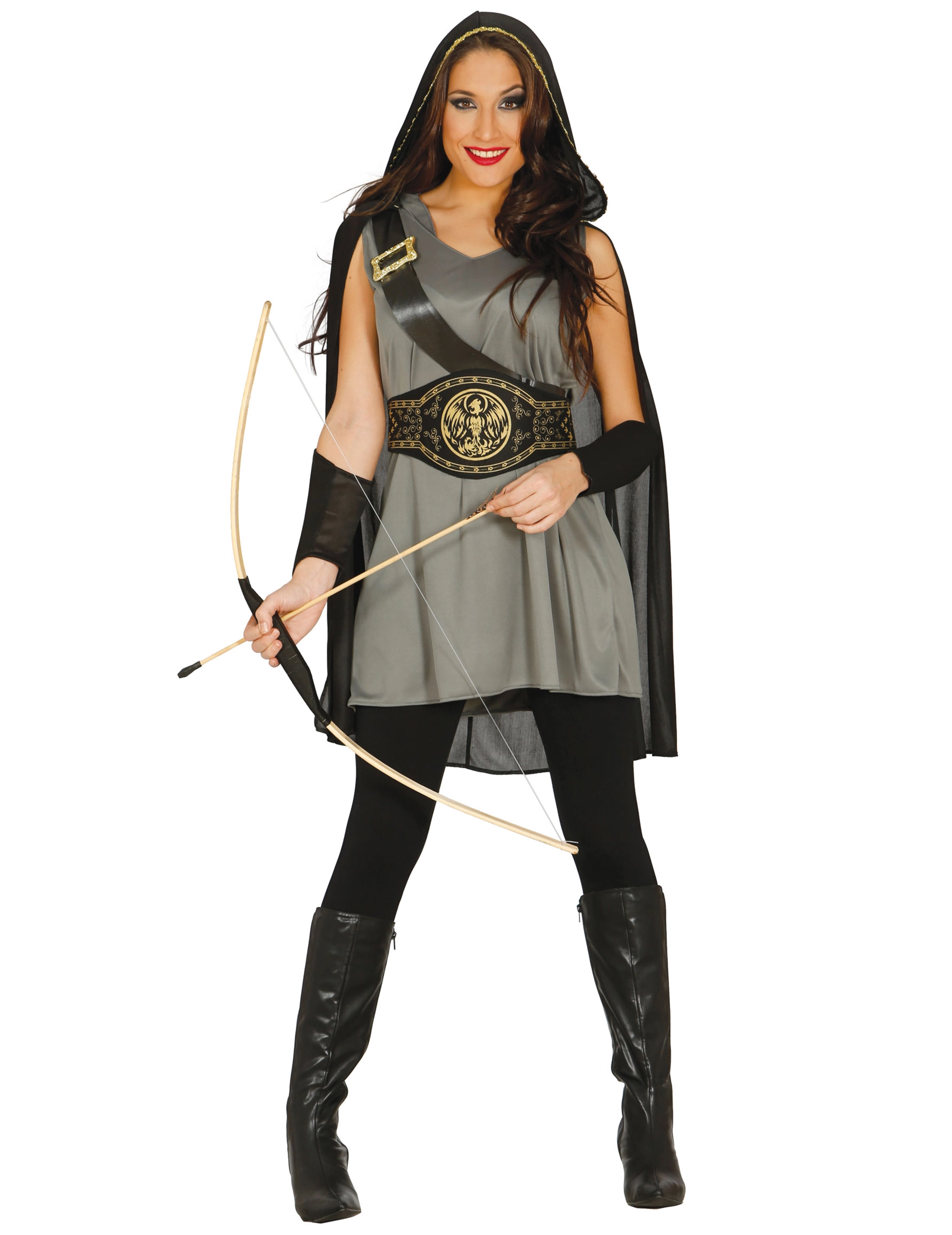 Dit vrouwelijke boogschutter kostuum is ideaal om als een echte held te spelen op een verkleedfeest zoals carnaval!