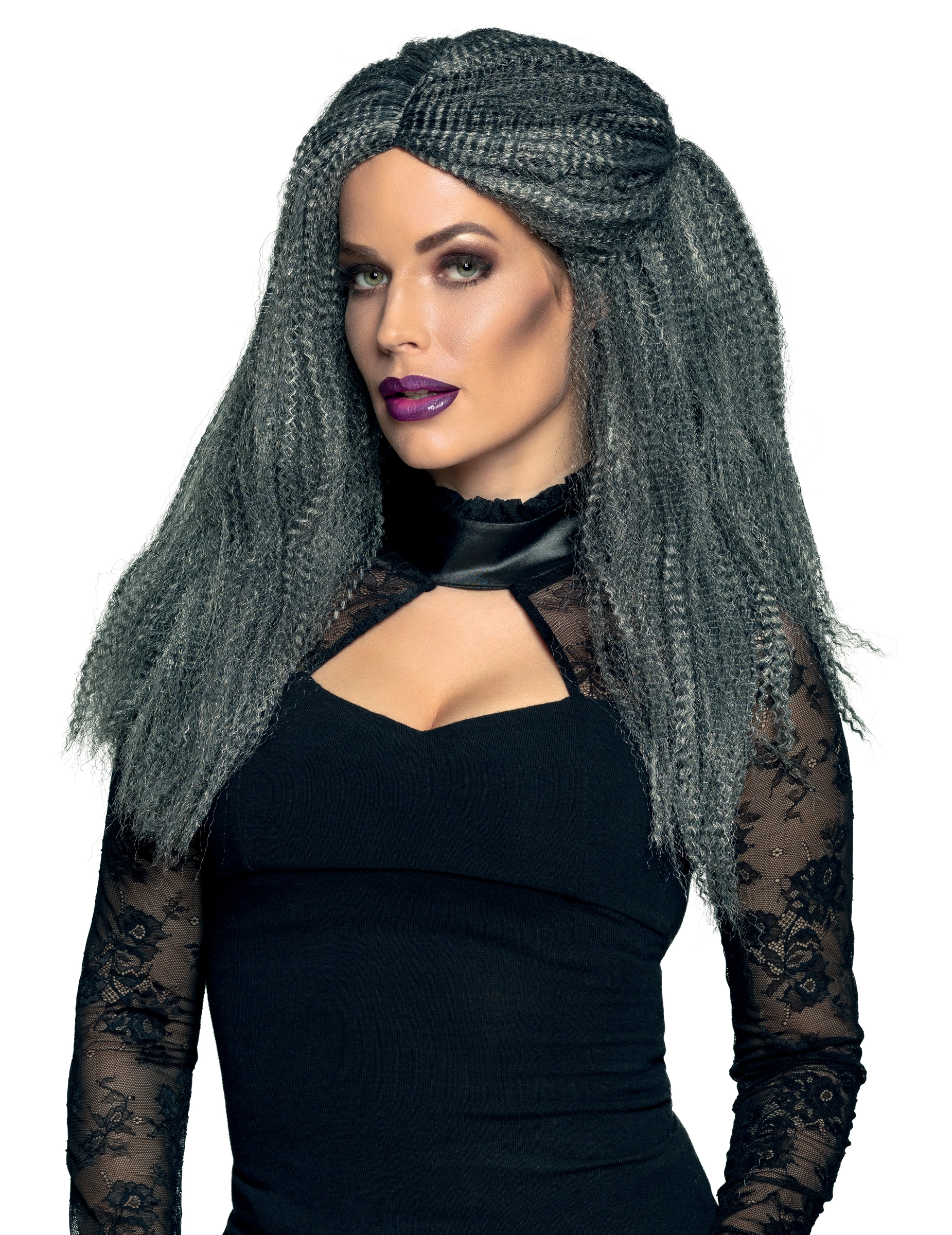 Speel als een sexy heks met deze volumineuze grijze wafelpruik op het Halloweenfeest!