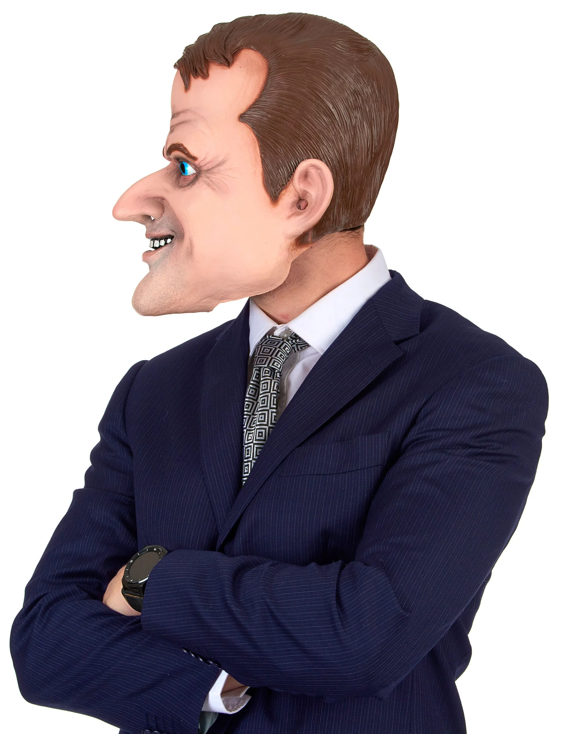 Dit latex masker voor volwassenen stelt de Franse politicus Emmanuel Macron voor.