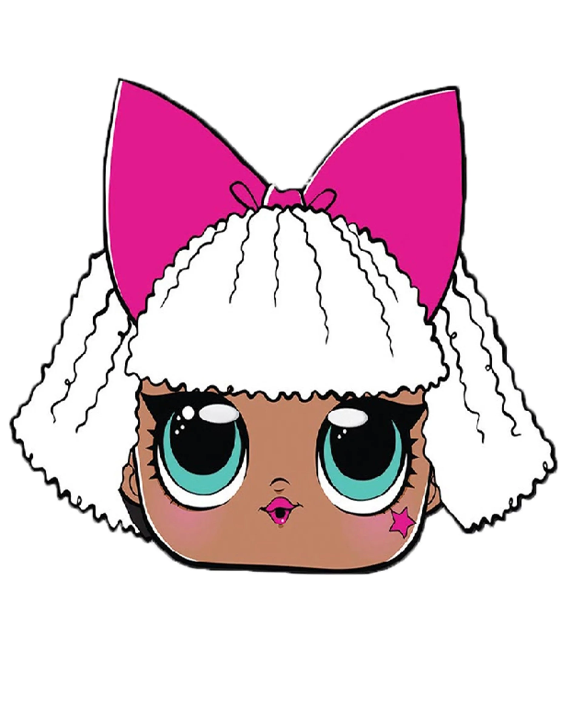 Dit LOL Surprise™ masker is gemaakt van karton. Het stelt Diva™ voor met witte haren en een roze strik.