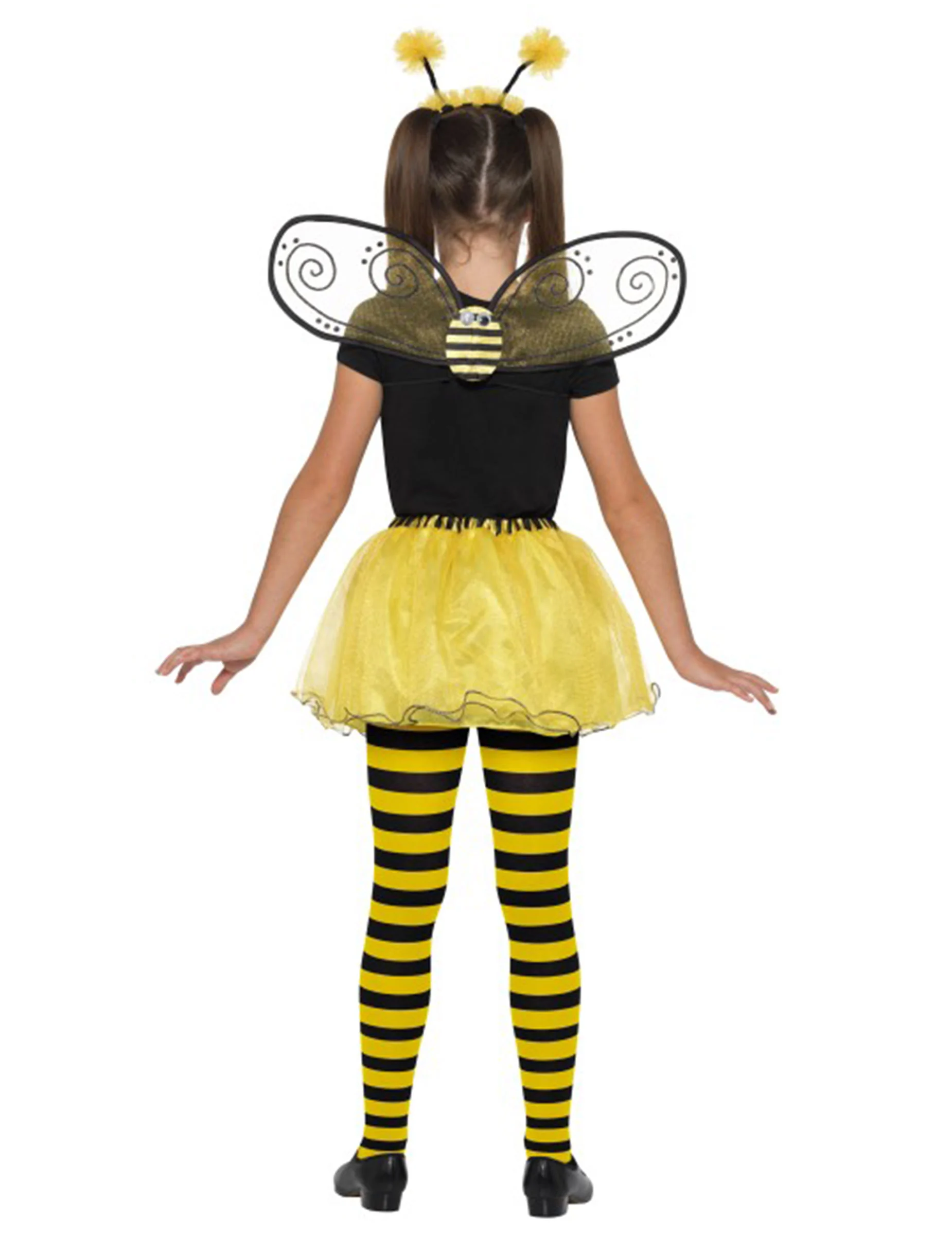 De hoofdband bestaat uit linten en twee antennes met een bolletje op de uiteindes. De taille van de tutu kan versteld worden en is versierd met een zwart strikje en blaadjes met gele en zwarte strepen. De rest van de tutu is van zwart tule. De vleugels maken de set compleet.