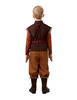 Het kostuum heeft lange mouwen en is gedecoreerd met rode tinten.