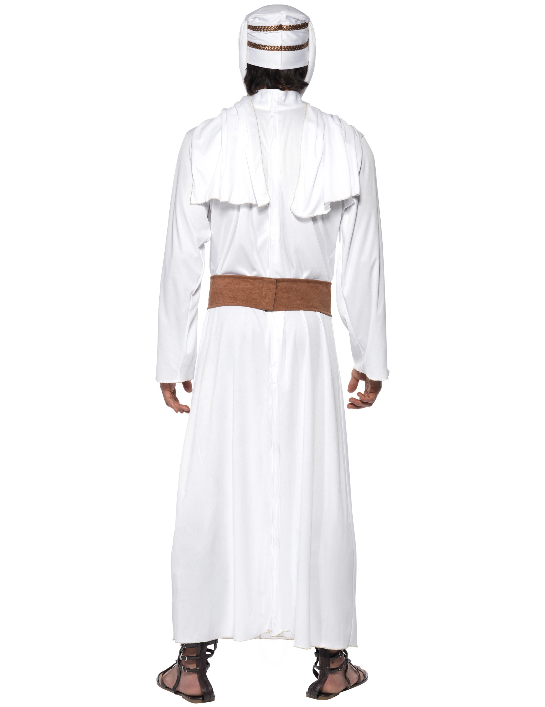 Dit officiële kostuum uit de film Lawrence of Arabia™ bestaat uit de lange witte tuniek, de bruine riem en de mantel. Het geheel bestaat uit een lichte stof (sabel en schoenen niet inbegrepen). Dit pak is perfect om gestalte te geven aan een echte Arabische strijder voor carnaval of een verkleedfeest.