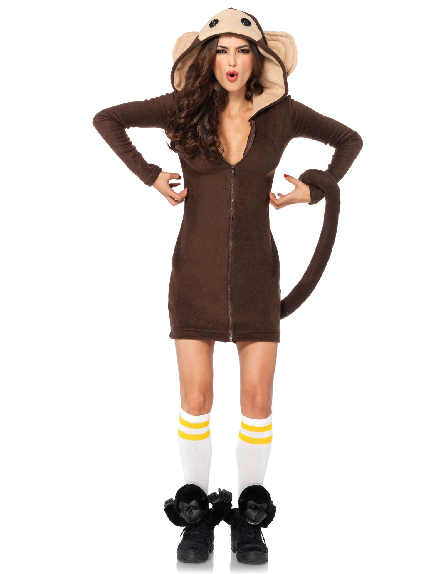 Deze sexy aap outfit voor dames bevat een jurk met capuchon en staart (sokken en schoenen niet inbegrepen).