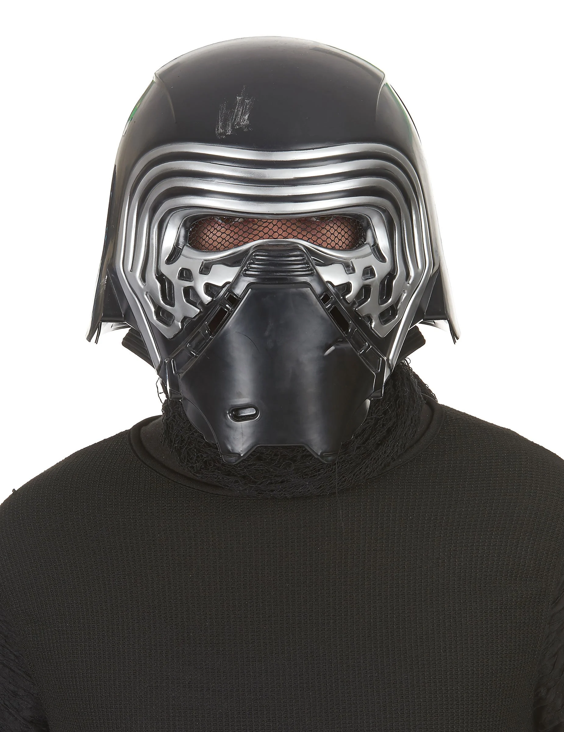Dit Kylo Ren masker voor volwassenen is een officieel Star Wars™ product. Dit masker van hard plastic is zwart met zilverkleurig. Er is een opening voor de ogen. De helm bestaat uit twee delen en kan met klittenband aan elkaar worden bevestigd.