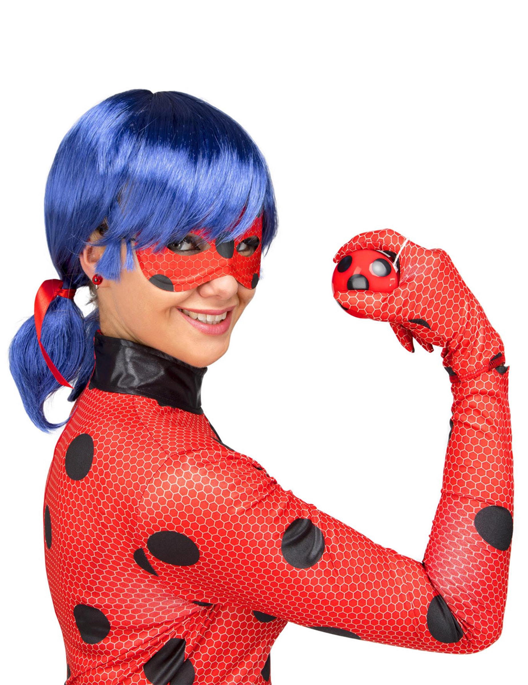 Dit Ladybug Miraculous™ kostuum heeft de officiële licentie en is bestemd voor volwassenen. Het bestaat uit een masker, handschoenen, een pruik, een pak, oorbellen en een yoyo.