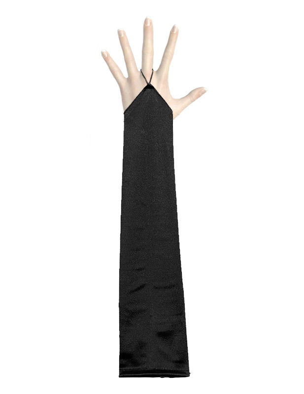 Deze lange satjinachtige handschoenen zijn lang en hebben een lengte van ongeveer 42 cm. Ze zijn zwart van kleur.