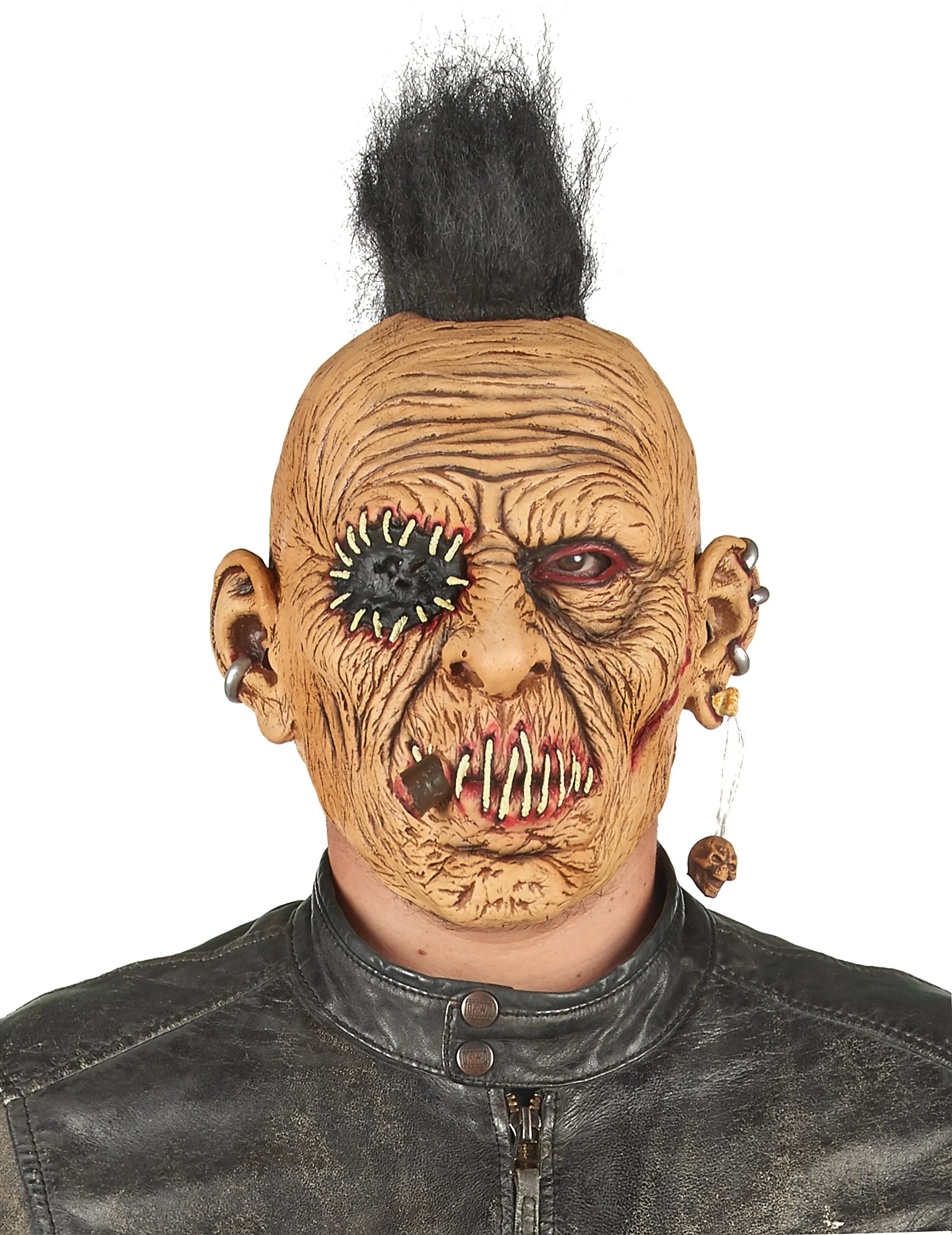 Dit masker voor volwassenen is gemaakt van latex. Het stelt een punker voor met een hanenka,.