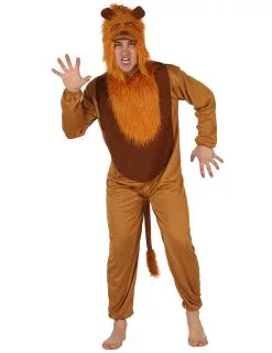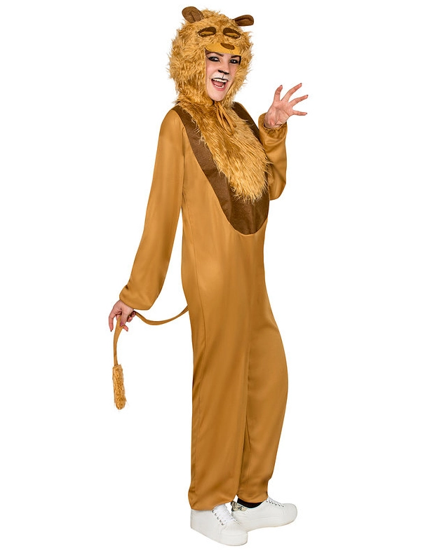 Dit leeuwen kostuum voor volwassenen bestaat uit een eendelig pak met capuchon. (Schoenen niet inclusief).