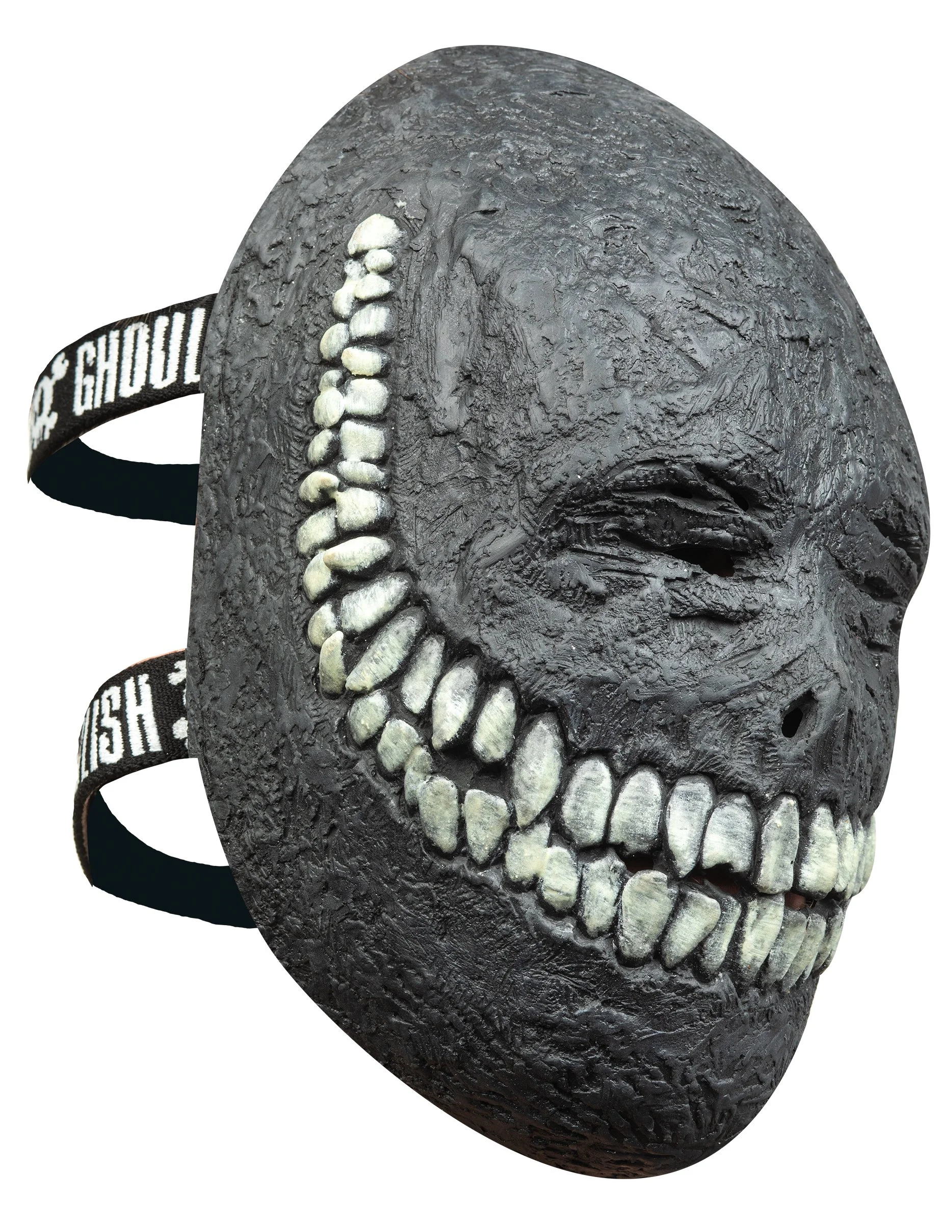 Hij is gemaakt van latex, is zwart van kleur en heeft ogen die gesloten lijken te zijn. Haar glimlach uit de hel is neon groen en gaat tot aan haar oren.