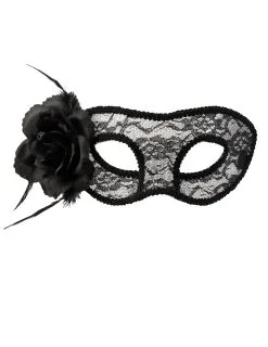 Zwart Kanten Masker Met Roos Voor Vrouwen