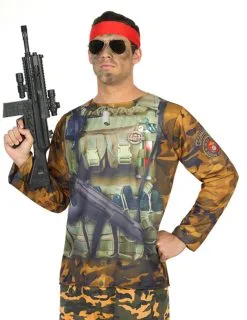 Dit t-shirt voor heren stelt een soldaten pak voor. (Alleen t-shirt is inbegrepen).