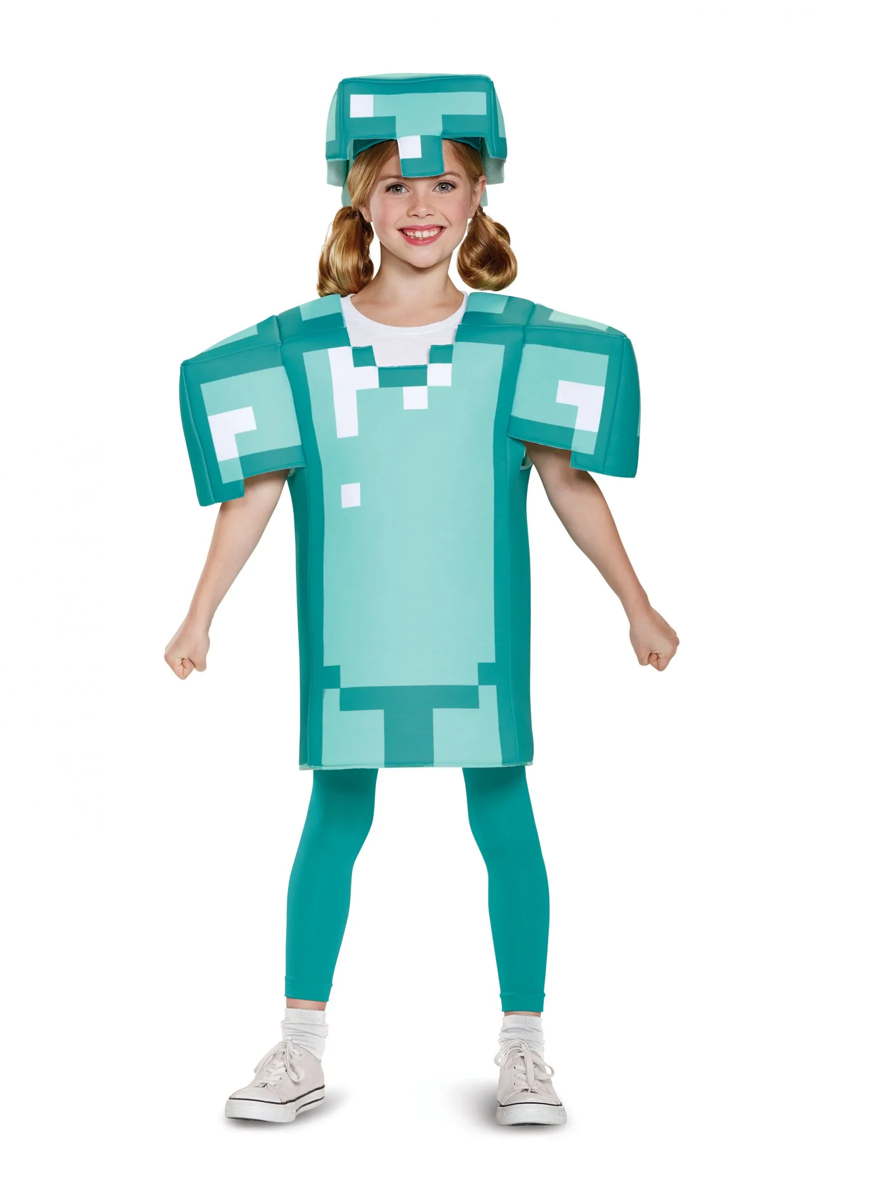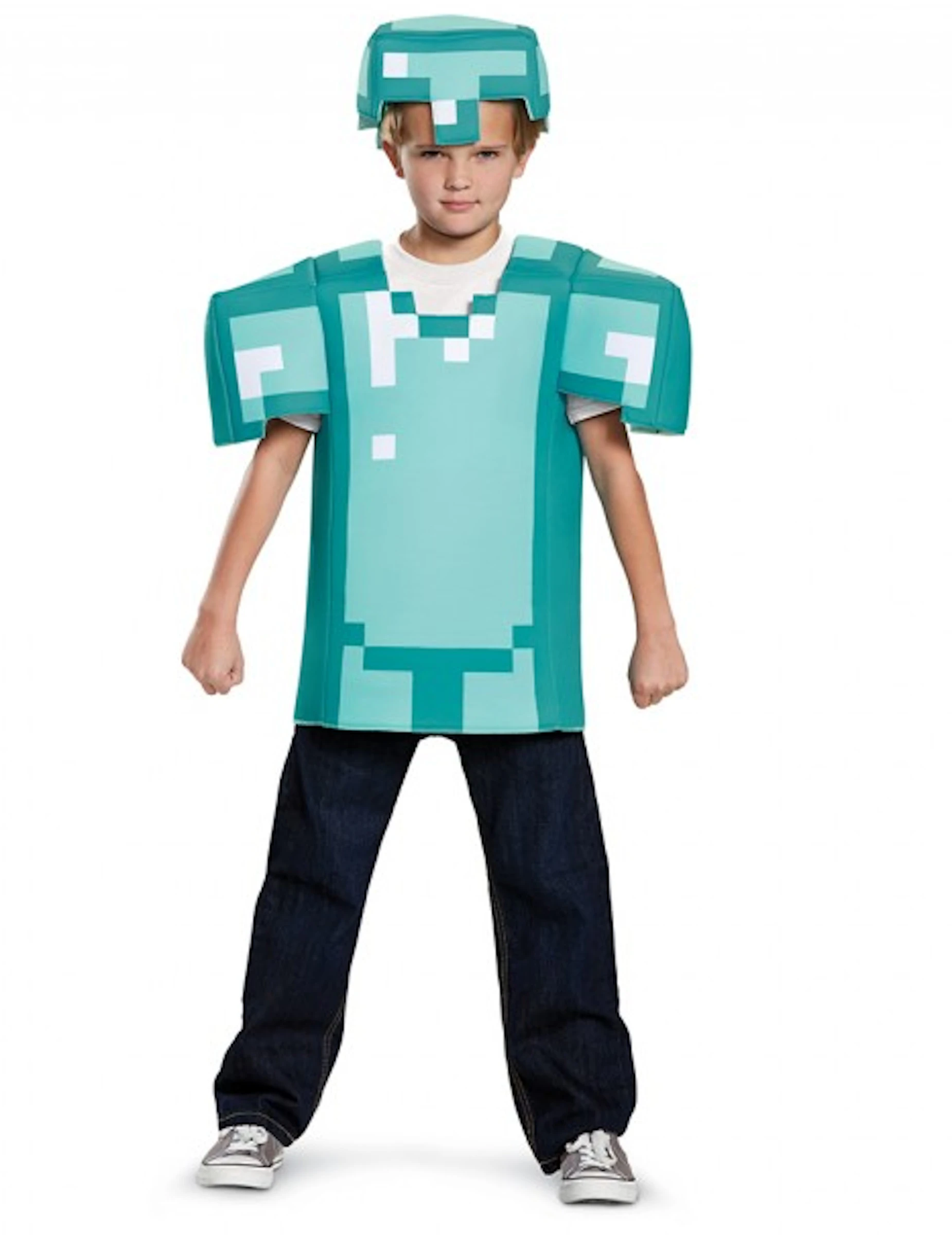 Het bovenstuk is van een licht gevoerde stof gemaakt voor een 3D effect. Het is in een blauw met witte kleur en soont het gepixelde designt van het Minecraft universum!