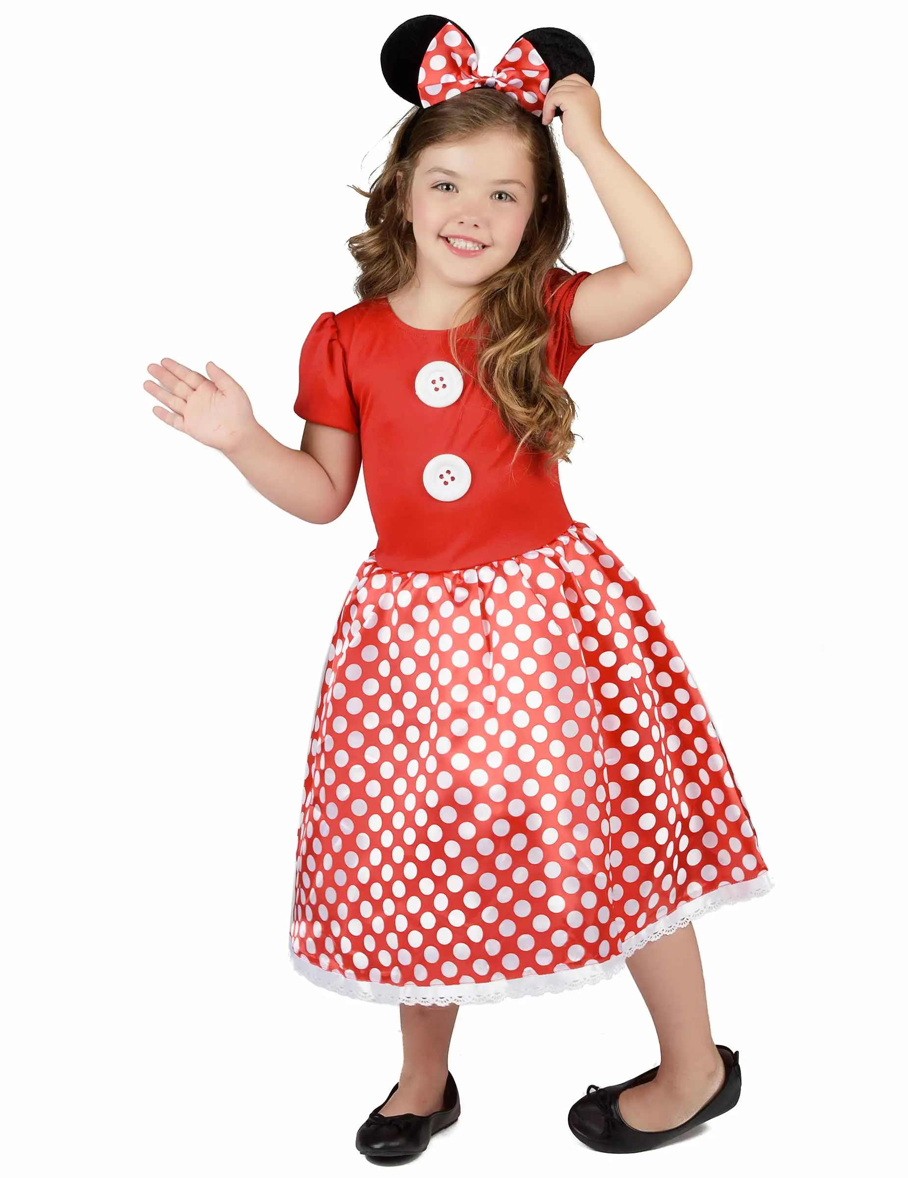 Een schattig klein muisje kostuum in rood met witte stippen!