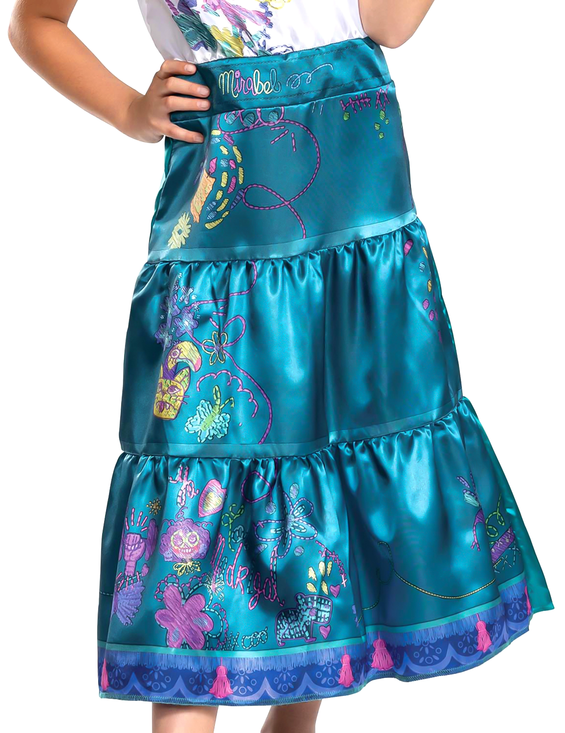 Een Mirabel kostuum, uit de Disney™ Encanto tekenfilm die uw dochter blij zal maken voor Carnaval of een Disney karakter-thema verjaardagsfeestje.