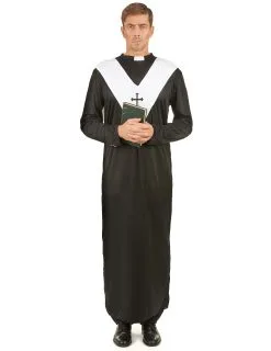 Monnikenkostuum voor mannen. Bestaat uit een lange zwarte jurk met witte kraag. Één maat, komt overeen met Medium/Large, past voor de meesten onder u. Ideaal voor een verkleedfeestje met vrienden.