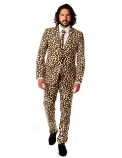 Dit Mr. Jaguar kostuum voor mannen is van het merk Opposuits™. Het bestaat uit een colbert, een pantalon en een stropdas. (Blouse en schoenen niet inbegrepen.) Het gehele kostuum is gemaakt van een hoge kwaliteit stof met een jaguarvacht print.