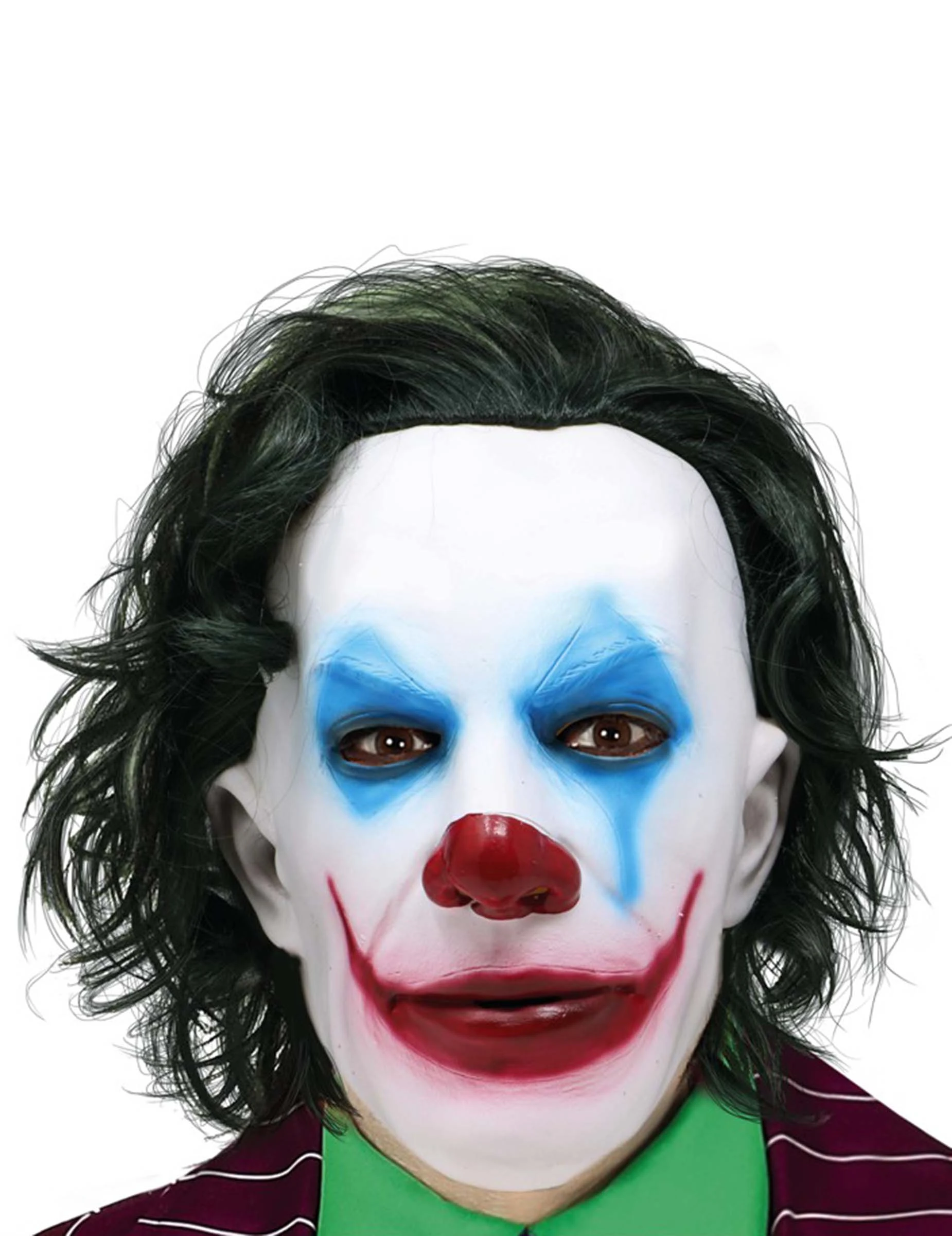 Het haar op het masker is groenig en kort, een beetje borstelig en maakt het uiterlijk van een boze clown compleet.