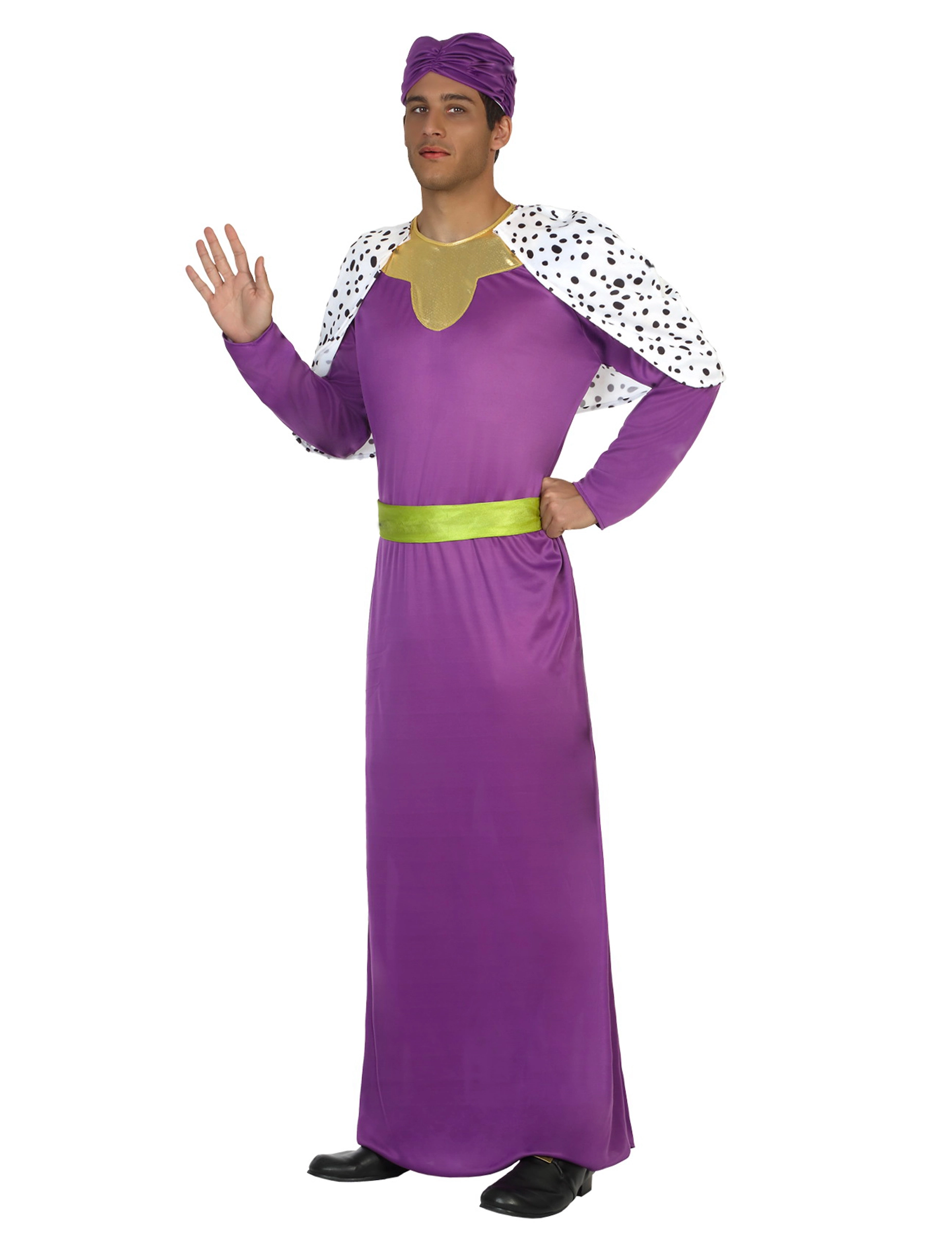 Dit drie koningen kostuumis voor volwassenen. Het bestaat uit een tuniek met lange mouwen en een ceintuur, een hoed en een cape (schoenen niet inbegrepen).