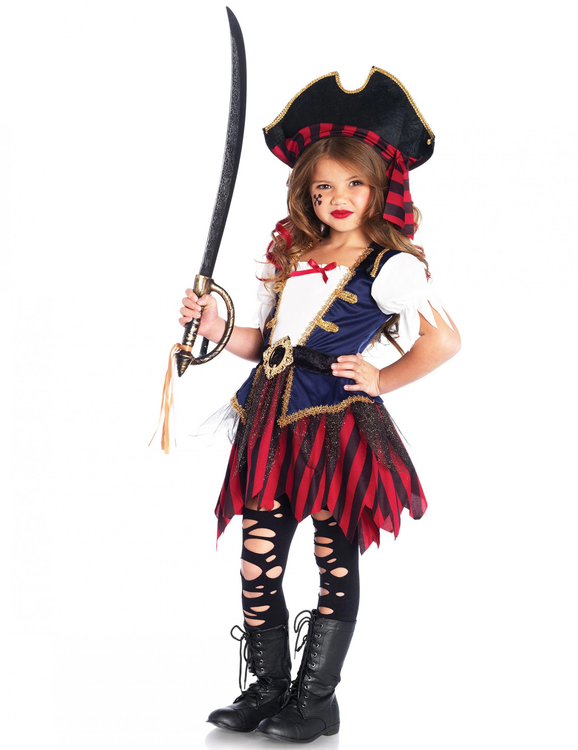Dit piraten kostuum zal perfect geschikt zijn om uw dochter te veranderen in een schattige kleine piraat voor carnaval.