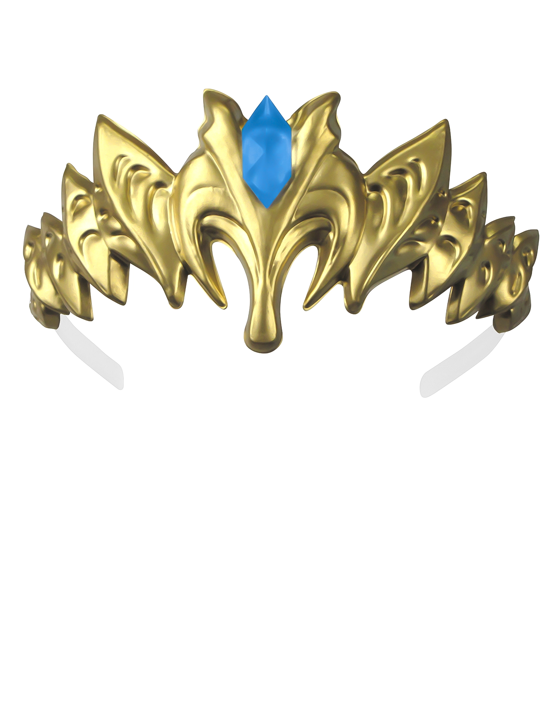Tot slot wordt het kostuum compleet gemaakt met een hoofdband. Het is goud en blauw en wordt gedragen als een hoofdband.