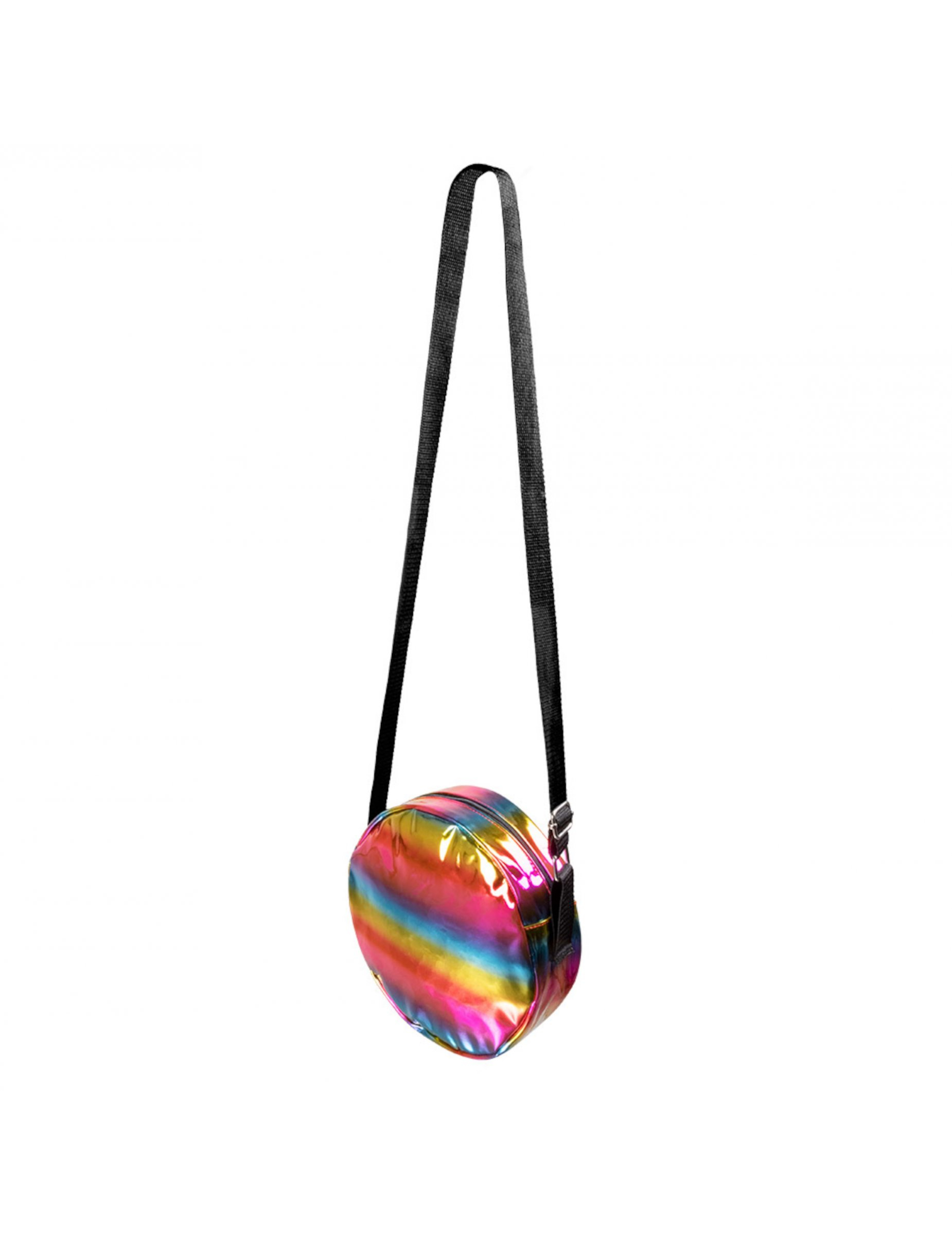 Deze ronde holografische regenboog schoudertas meet 64 x 6 x 22 (L x h x B).