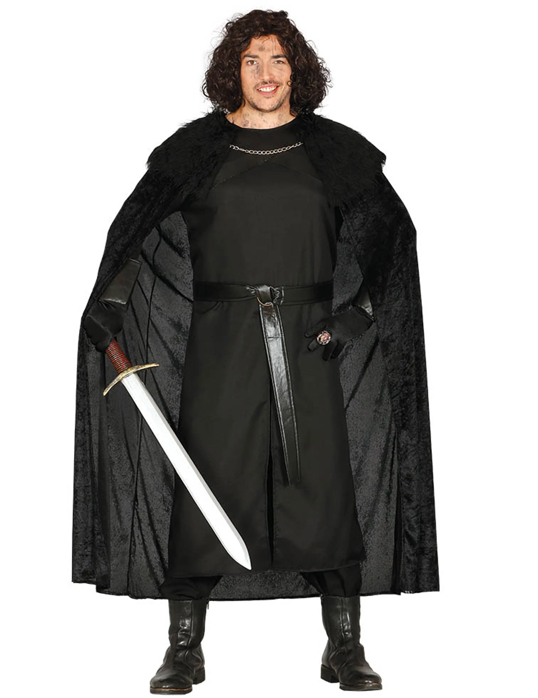 De tuniek is lang en volledig zwart. Het heeft lange mouwen en een ronde kraag. De cape is ook lang en komt tot op de kuiten, het is gemaakt van fluweelachtig, zwart stof. Het heeft een kraag van zwart nepbont voor een middeleeuwse look en een kettinkje van zilverkleurig metaal.