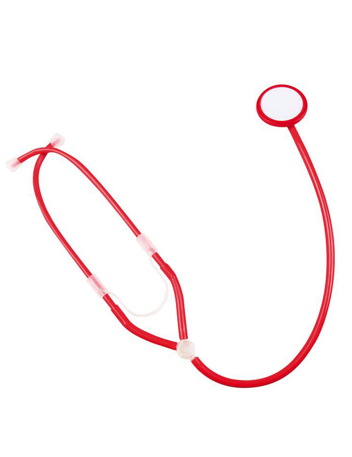 Deze stethoscoop voor volwassenen is gemaakt van plastic. De verpleegster accessoire is rood en is ongeveer 65 cm lang.