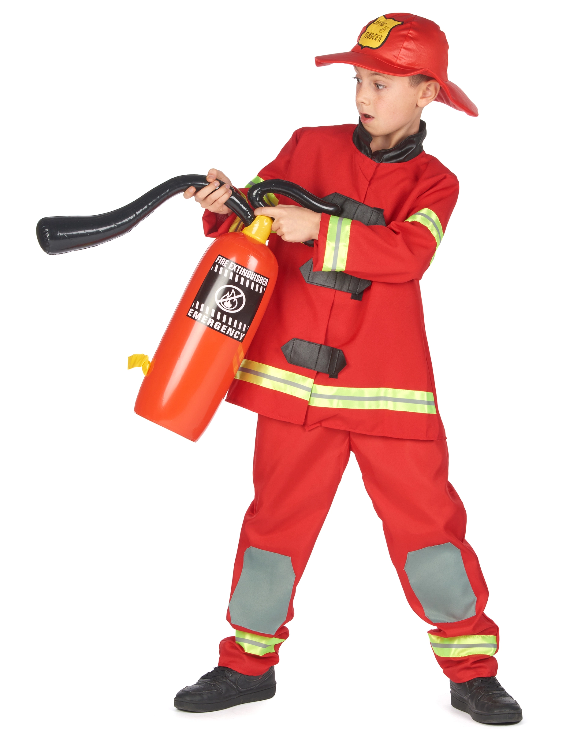 Dit brandweermanpak voor jongens bestaat uit een hoed, een vest met kraag en een broek die elastisch is in de taille. Het pak heeft reflecterende stroken (accessoires en schoenen niet inbegrepen). Dit pak is perfect om gestalte te geven aan een echte brandweerman tijdens carnaval of een ander verkleedfeest.