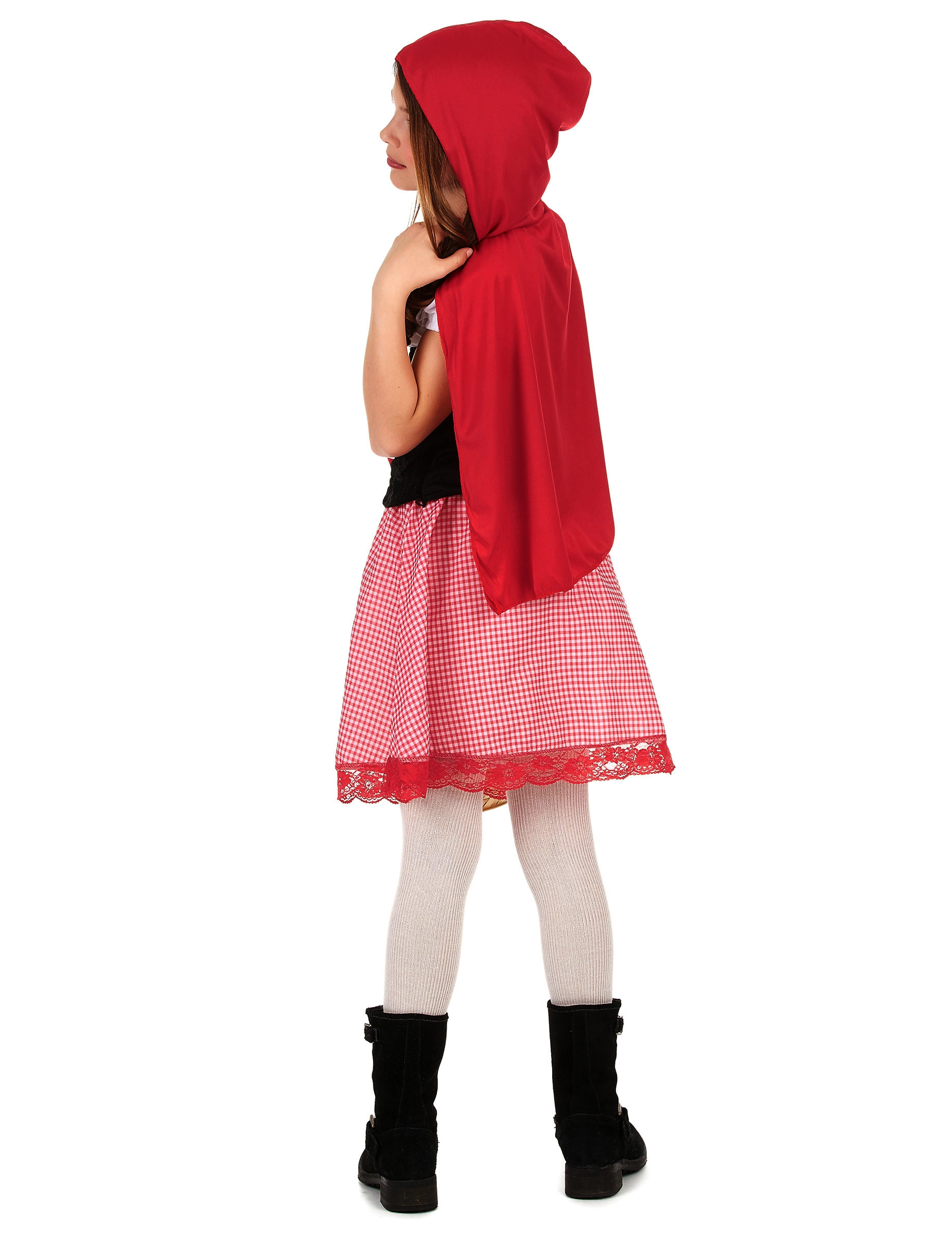 Roodkapjeskostuum voor meisjes dat bestaat uit een rok, een wit bovenstuk, een korset en een rode cape. Het rokje met rode en witte ruitjes heeft een witte schort in nepkant op de voorzijde, de taille is elastisch. Het aanpasbare zwart-witte korset heeft een nepcorsage op de borst en wordt over het witte bovenstuk gedragen. De rode cape met kap wordt rond de hals geknoopt met een rood lint (mand en schoenen niet inbegrepen). Dit Roodkapjespak voor kinderen zal ideaal zijn voor een verkleedverjaardagsfeest, een voorstelling of carnaval.
