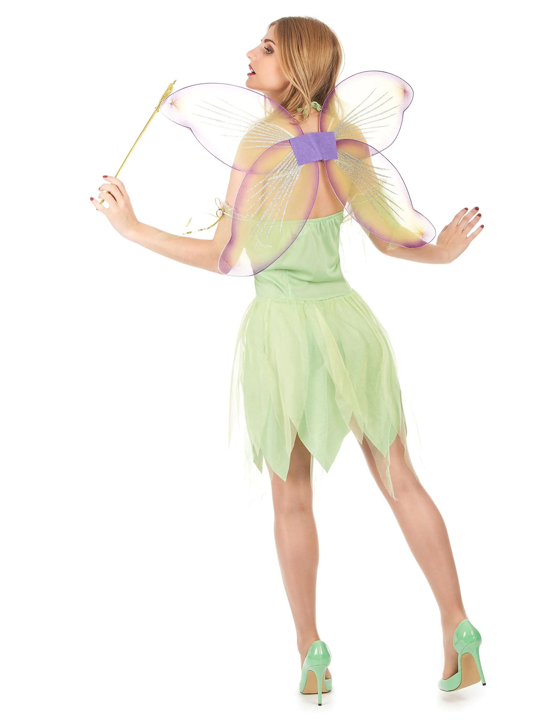 Dit sexy feeën pak voor vrouwen bestaat uit een korte jurk, een paar vleugels en armbanden.