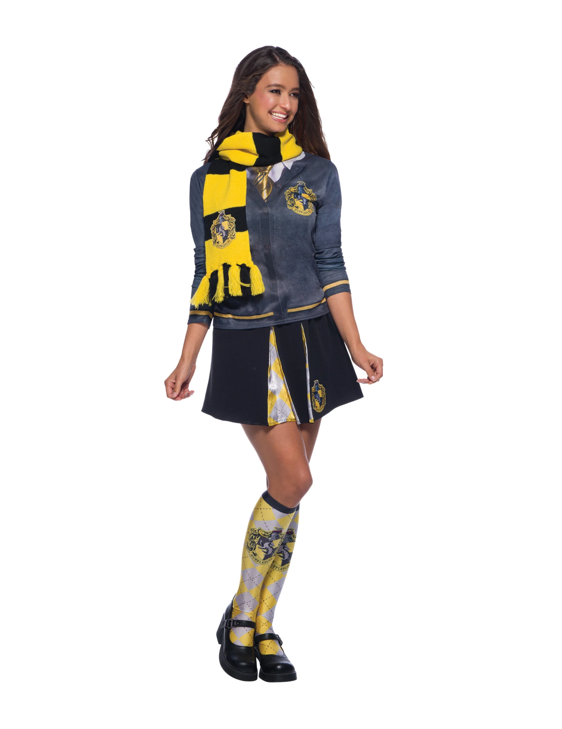 Deze sjaal in de kleuren van het Hufflepuff huis heeft kwastjes aan elke kant. Het is ongeveer 2 meter lang en heeft het Huiswapen erop genaaid.