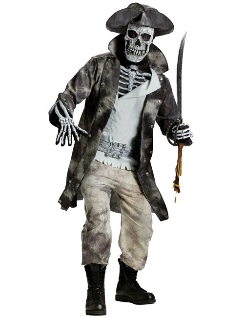Dit piraten spook kostuum voor mannen bestaat uit een masker, handschoenen en skelethanden.