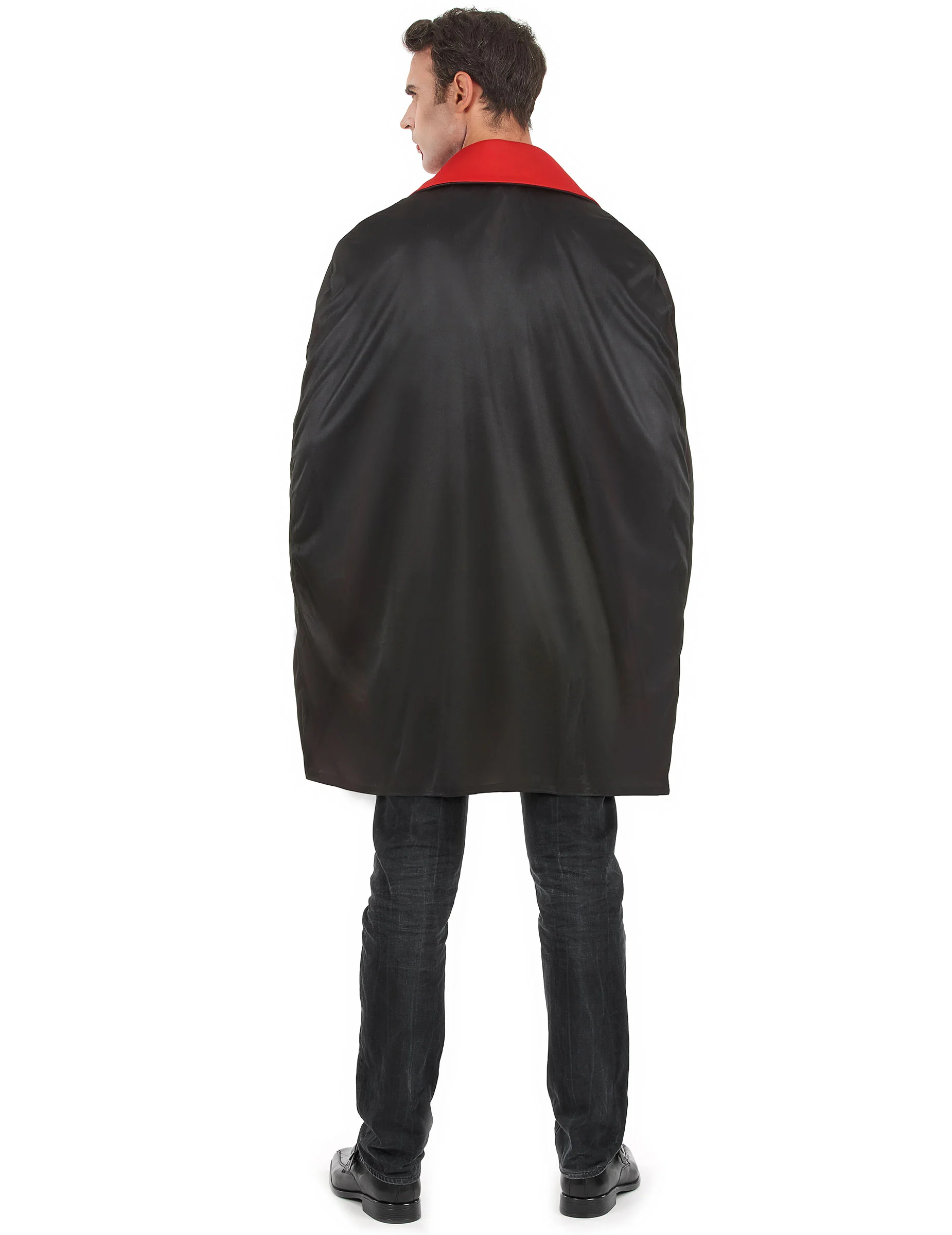 Dit vampier komstuum voor mannen bestaat uit een grijs-wit bovenstuk met een medaillon op de kraag genaaid en een rood-zwarte cape met kraag die bevestigd wordt met behulp van een lintje (pruik, handschoenen, broek en schoenen niet inbegrepen). Dit kostuum is ideaal voor Halloween of voor een ander verkleedfeest.