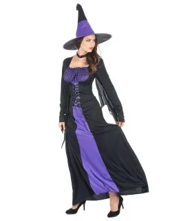 Zwart Met Paars Heks Kostuum Voor Vrouwen